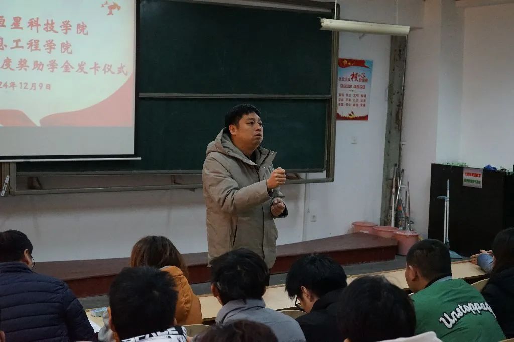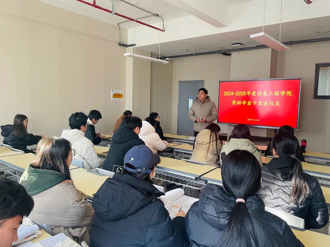 奖学金,是你卓越成绩的荣耀见证;助学金,是困厄中伸出的援手温暖强韧。每一份奖学金,都是对同学们辛勤奋斗的肯定;每一份助学金,都承载着对学子们不懈追求知识的深深敬意。它不仅仅是一份经济上的支持,更是心灵的慰藉和前行的动力。信息工程学院于2024年12月9日中午12点在A4教学楼306教室举行了助奖学金发卡仪式。